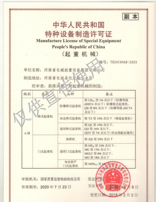 版權所有 Copyright @   河南省長城起重設備集團有限公司  All Rights Reserved.