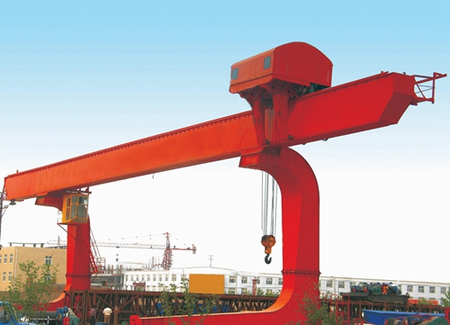 門式起重機是橋式起重機的一種變形。主要用于室外的貨場、料場貨、散貨的裝卸作業。它的金屬結構像門形框架,承載主梁下安裝兩條支腳,可以直接在地面的軌道上行走,主梁兩端可以具有外伸懸臂梁。門式起重機具有場地利用率高、作業范圍大、適應面廣、通用性強等特點,在港口貨場得到廣泛使用。