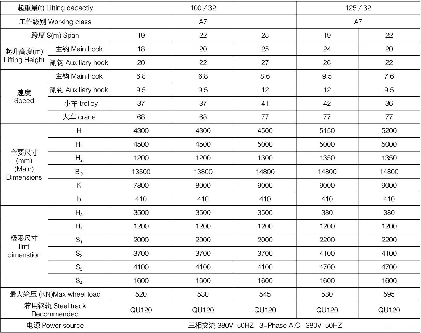 雙梁橋式起重機的選型參數起重量